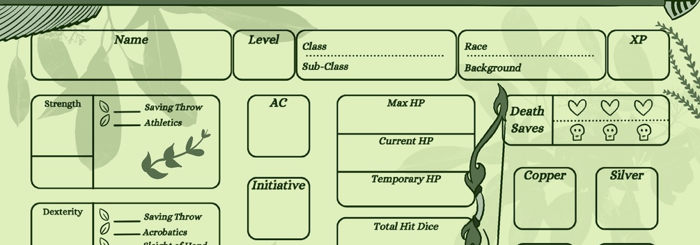 Whether you're playing a character with the Ranger class or perhaps you just want the archer aesthetic with some nature details, this character sheet is for you!